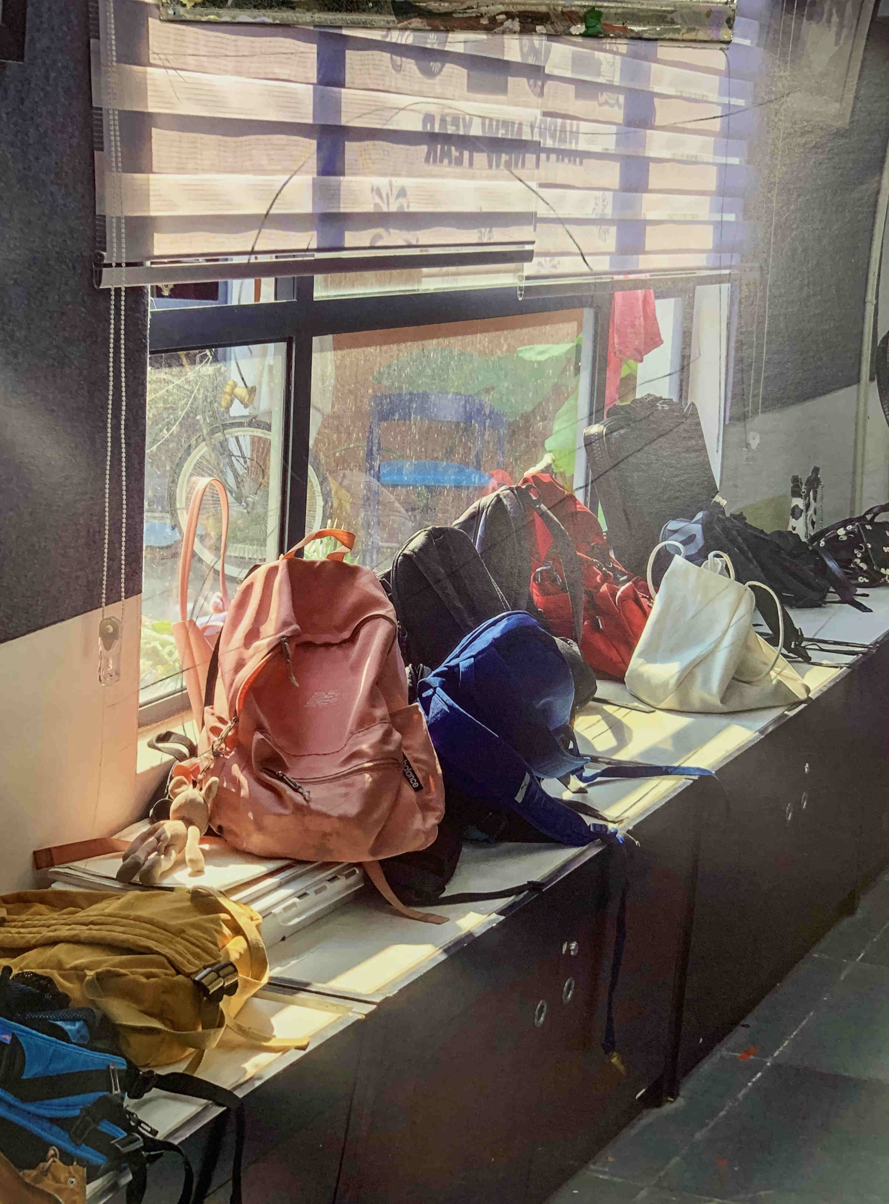第三步:完成亮部到暗部的顏色過渡,將背景統(tǒng)一把空間感做出來,視覺中心的三個背包進行著重刻畫,并由遠到近分清主次。