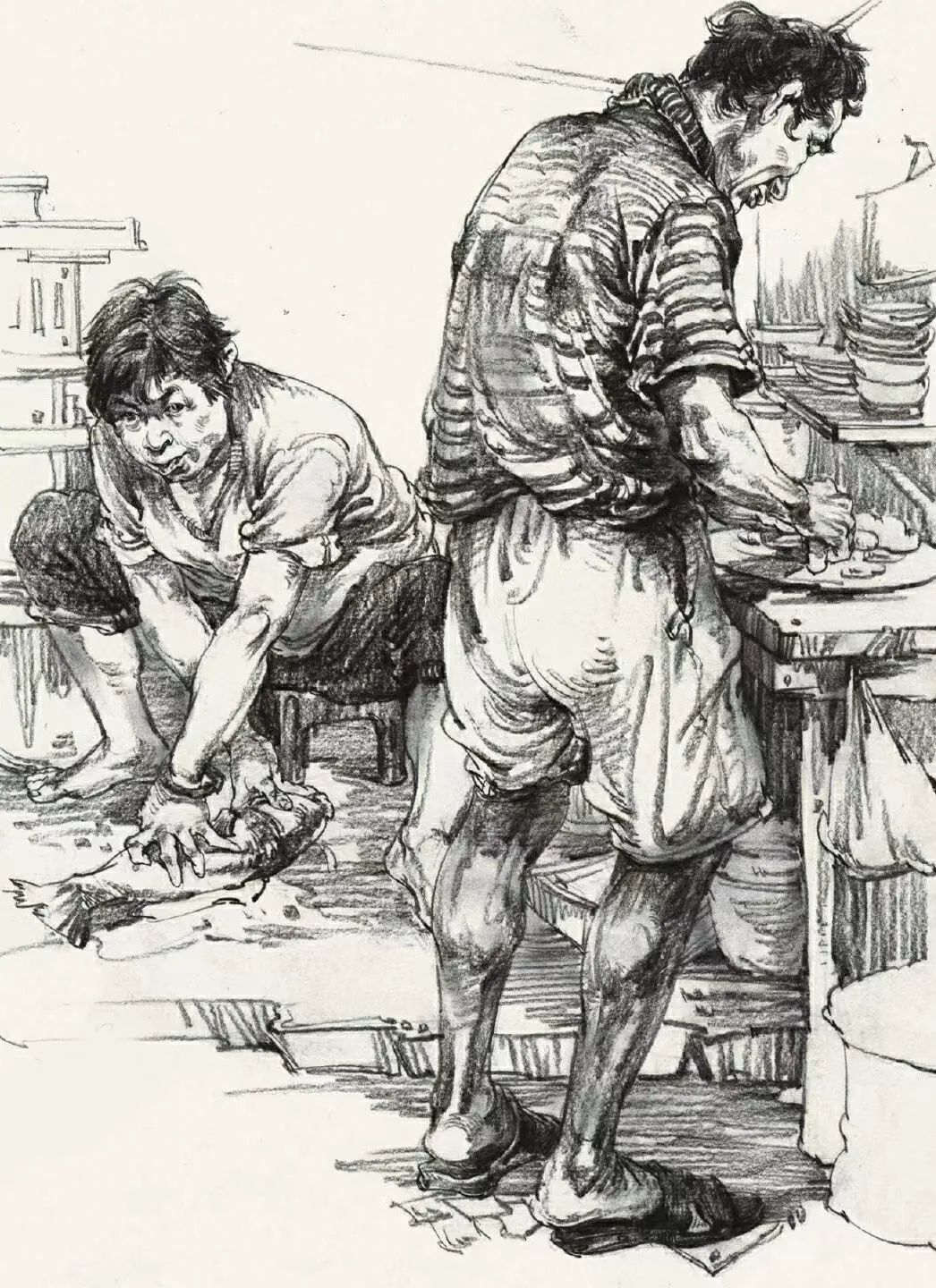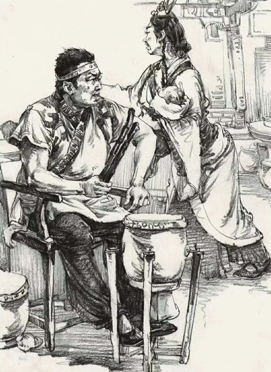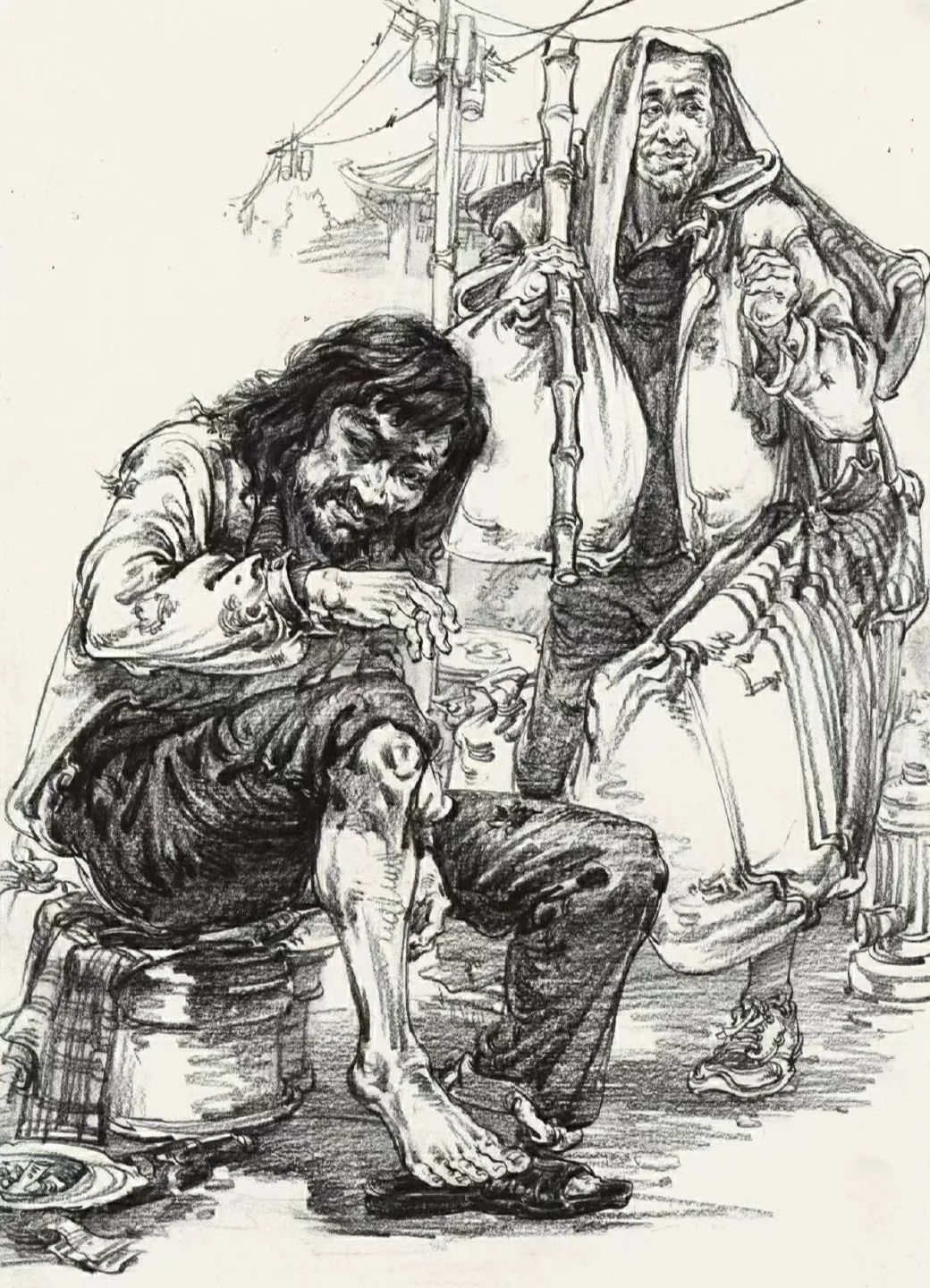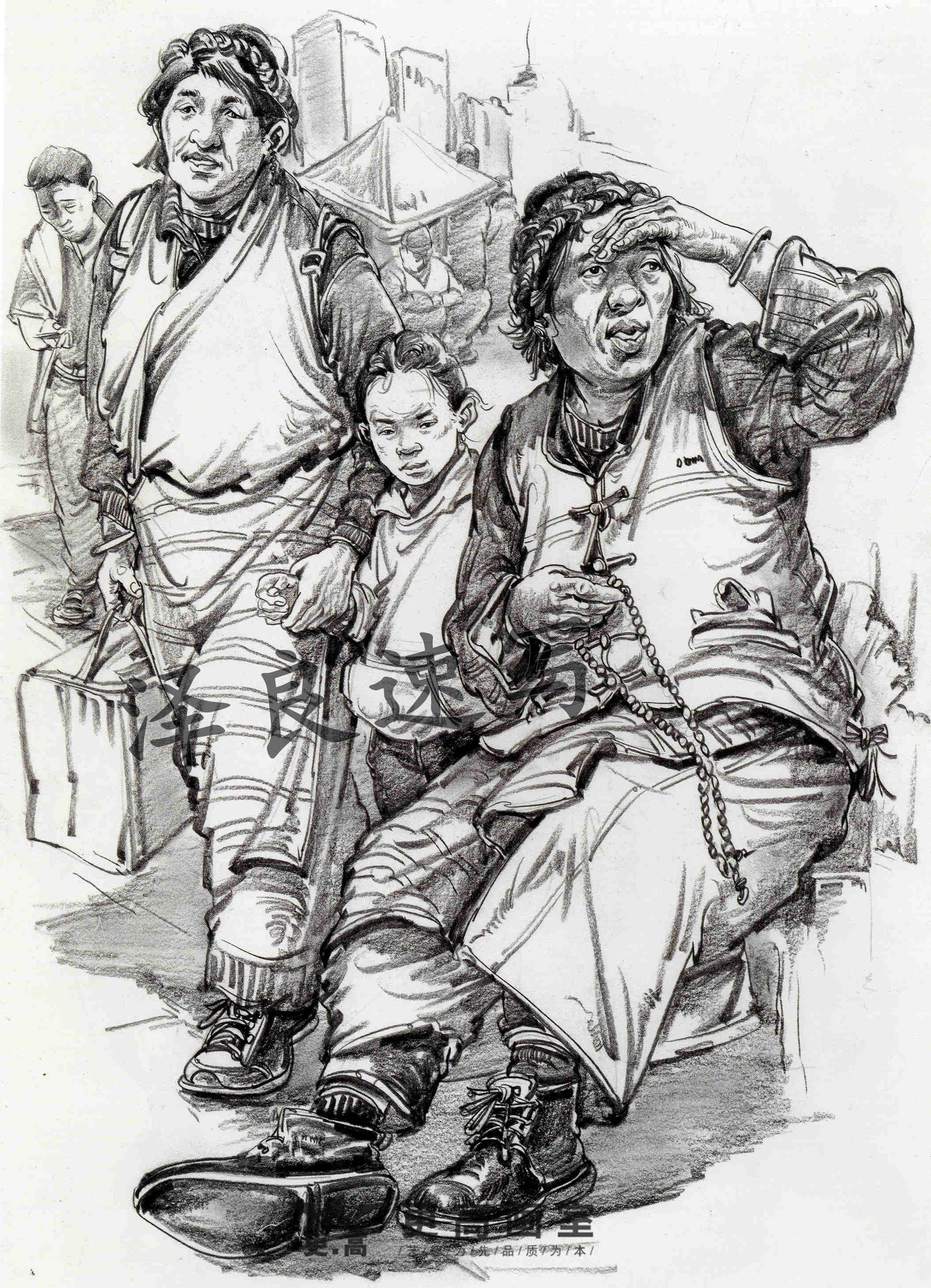 其次是人物要有主次之分,主次不一定是前面的人就是主要的,后面的人就一定是次要的,而是說(shuō)塑造程度,以及畫(huà)面的中心,幾個(gè)人基本的關(guān)系和塑造都要有,而主要的人物要有一些深入塑造,不管是線條還是明暗的表現(xiàn)手法都是這樣,一旦沒(méi)有主次之分,那么畫(huà)面就會(huì)平平淡淡,沒(méi)有亮點(diǎn)。