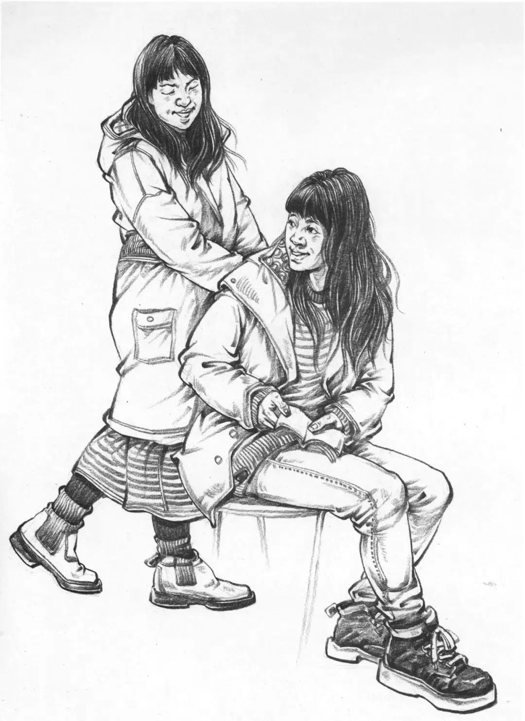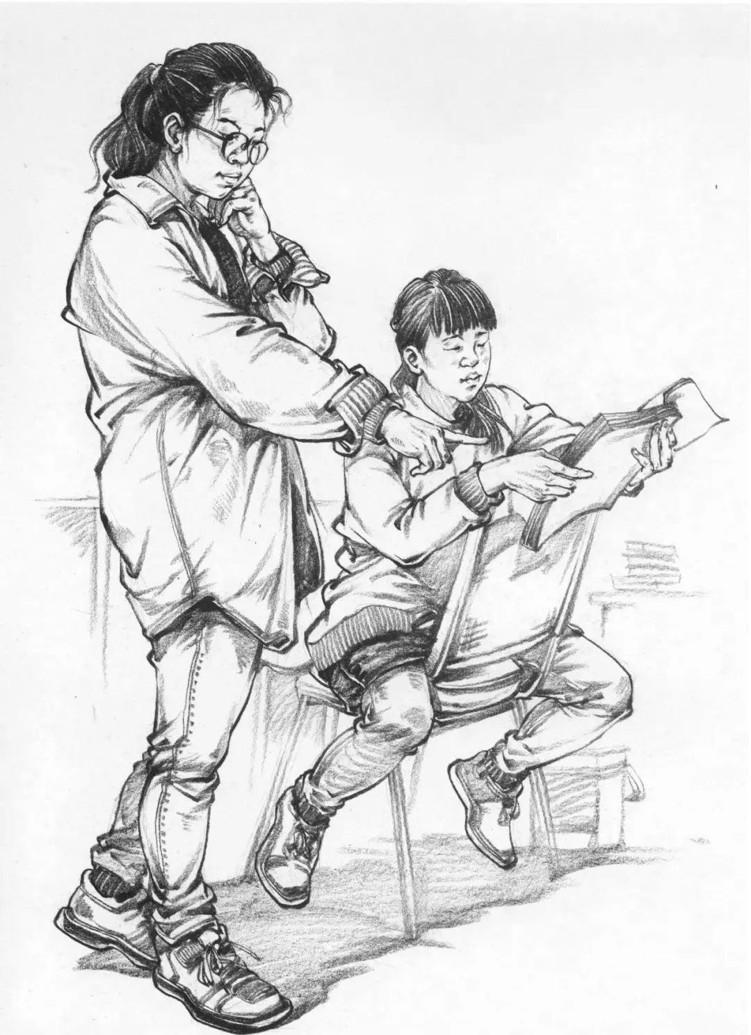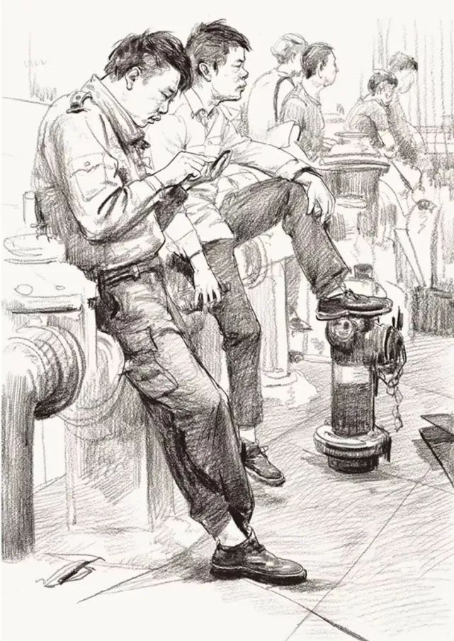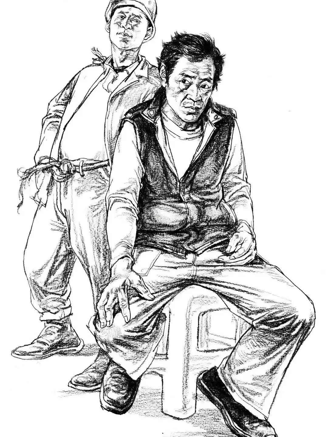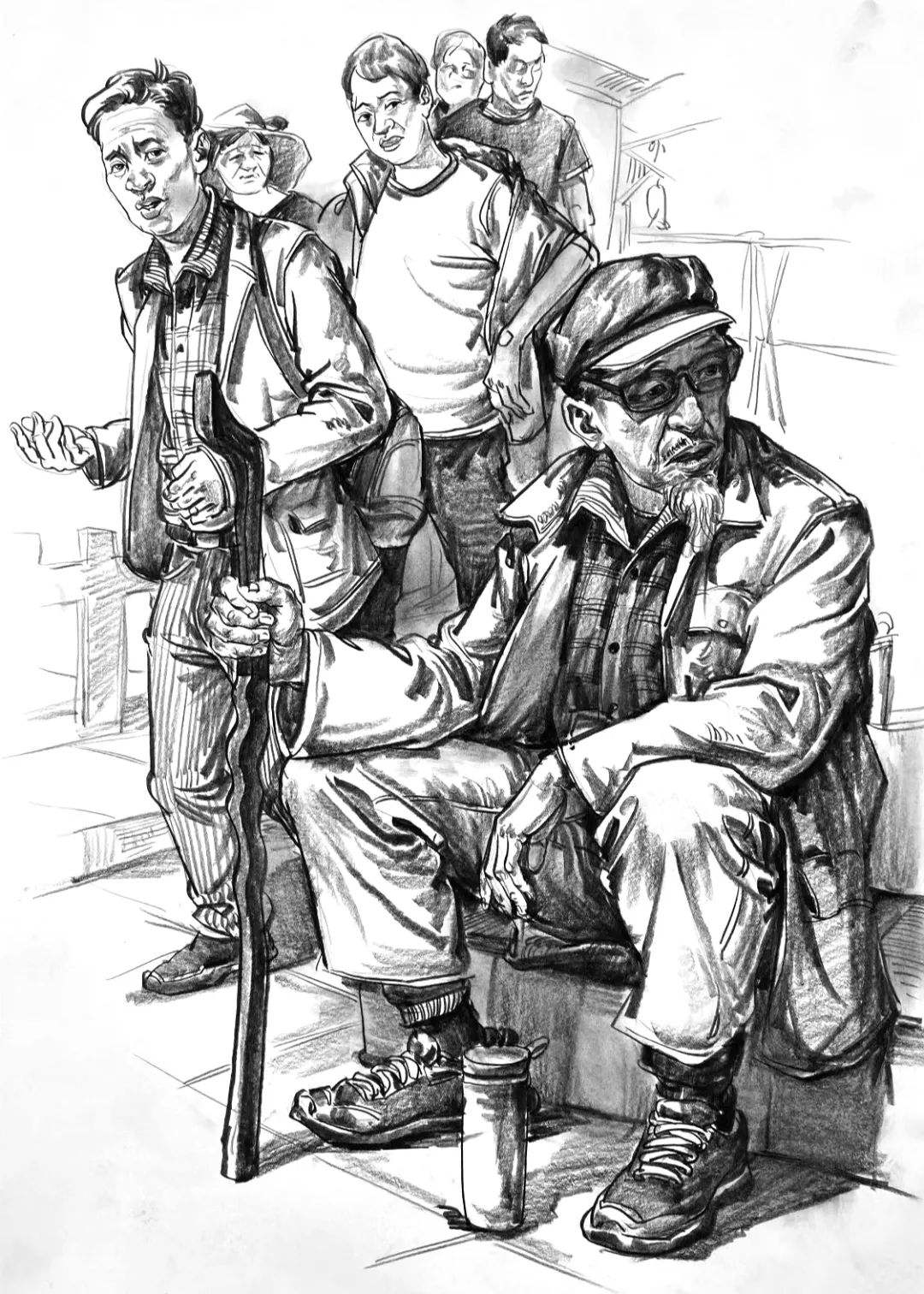 單人速寫(xiě)是研究人物本身的關(guān)系,組合速寫(xiě)是研究人與人之間的空間關(guān)系。