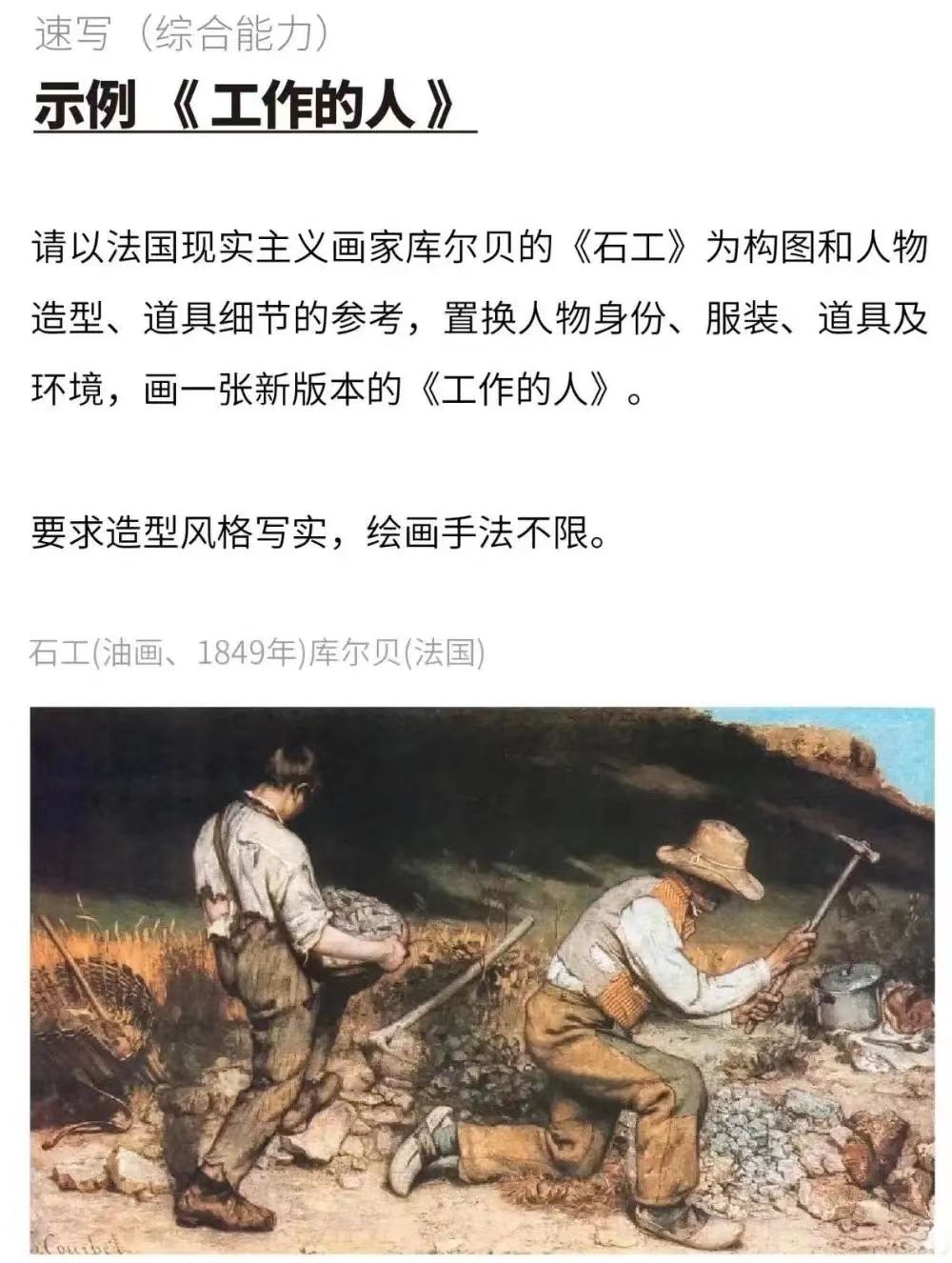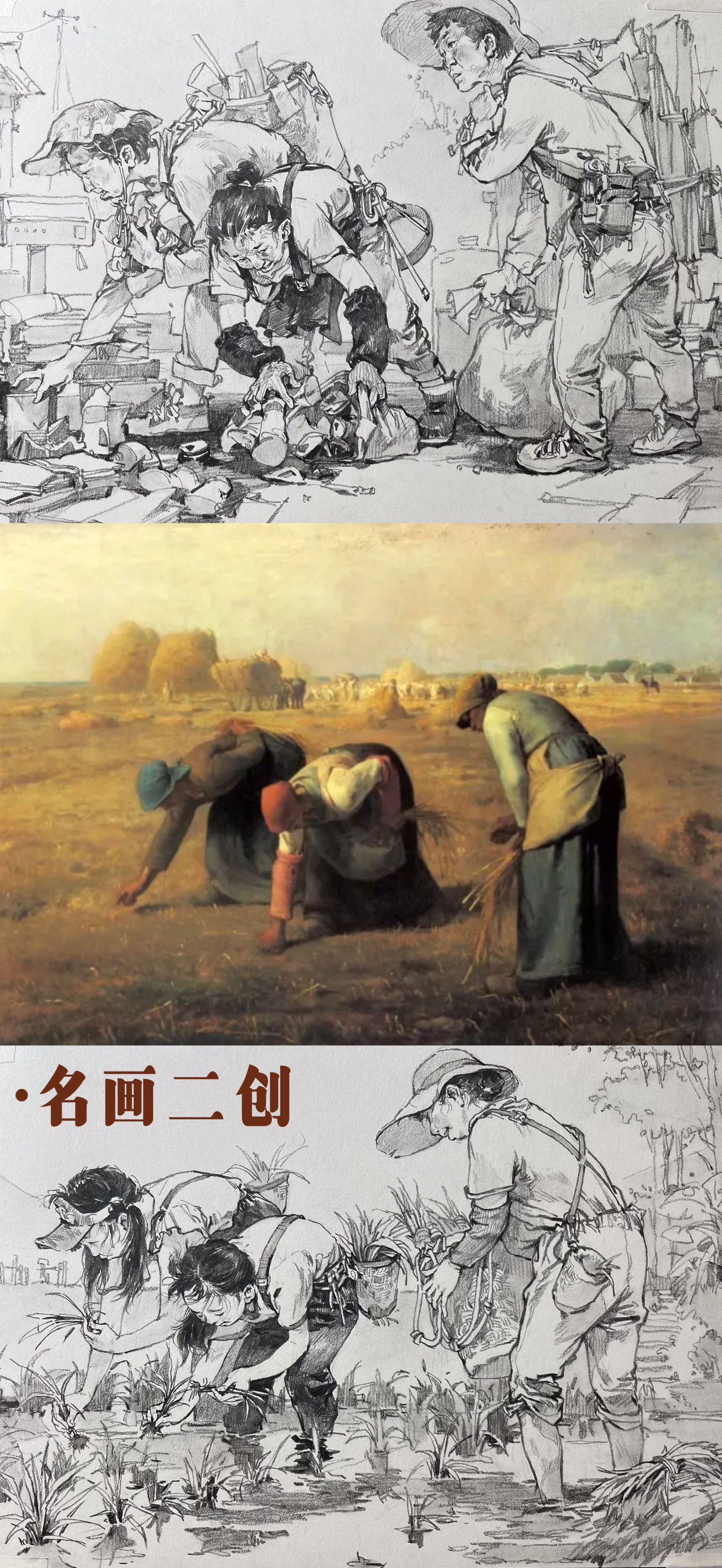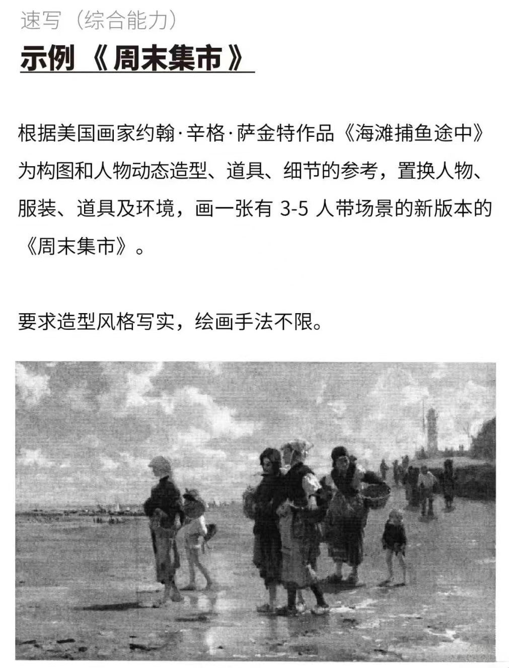 聯(lián)考改革之后,各省的考題都給你標(biāo)注的明明白白的了,名畫置換、命題創(chuàng)作、照片寫生,就這三類,首先名畫置換會給你一幅作品,讓你參考他的畫面構(gòu)圖,人物造型,環(huán)境細(xì)節(jié),什么意思?