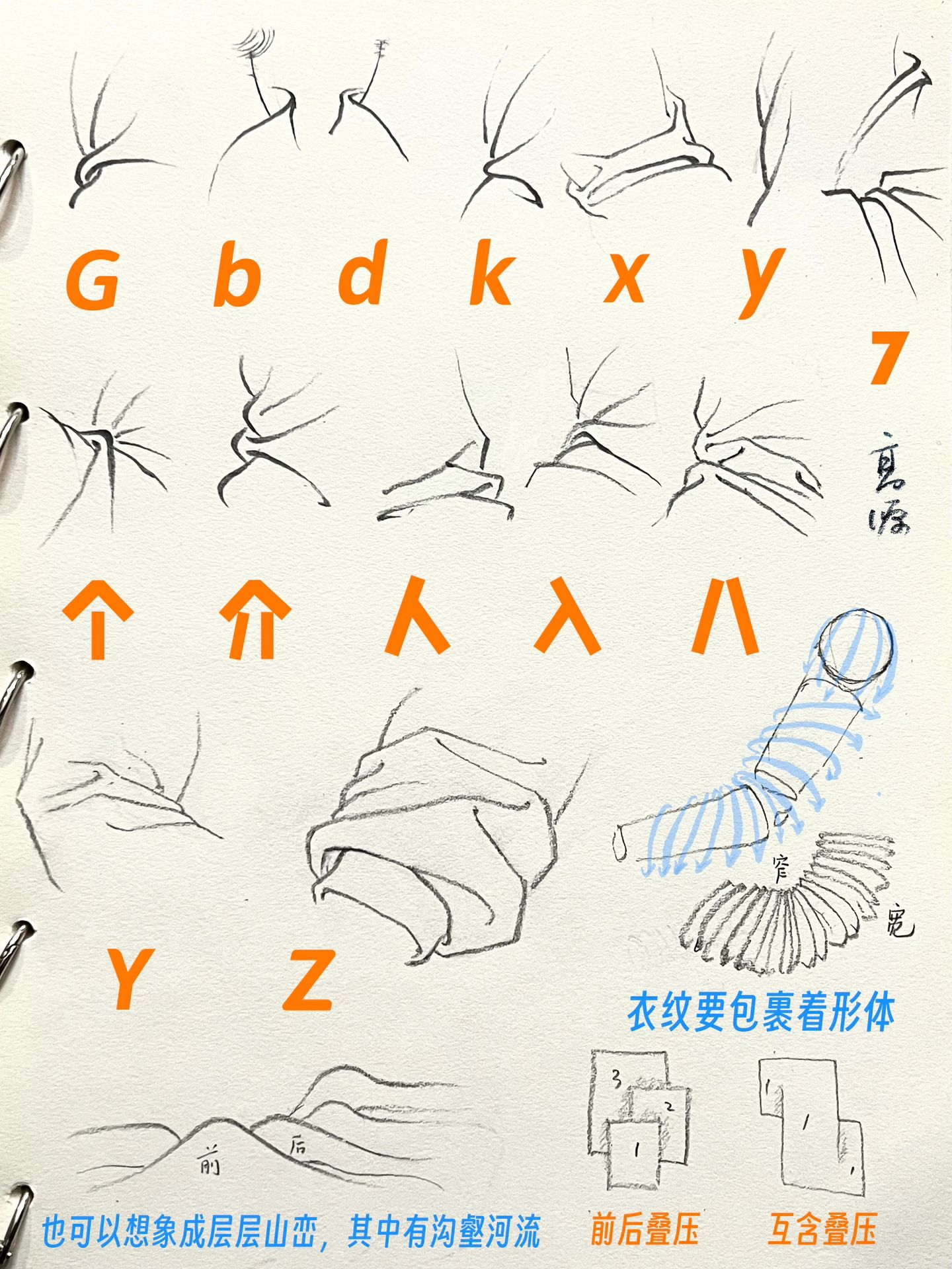 1.可以用常見(jiàn)的字母來(lái)進(jìn)行組合,方便我們一目了然的認(rèn)識(shí)衣紋的走向,希望大家活學(xué)活用,舉一反三。