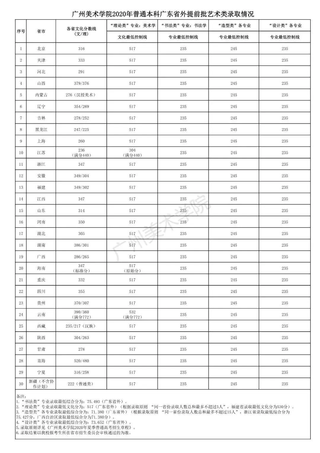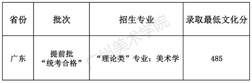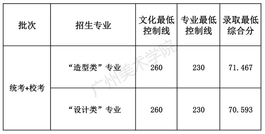“美術類”各專業、“設計類”各專業:文化成績參照廣東省美術類本科院校錄取分數 線,由我校自行劃定。