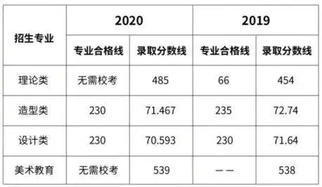 1.美術學類專業錄取最低綜合分64.153分(根據錄取原則“同一省份錄取人數總和 最多不超過15人”,湖南省錄取最低綜合分為73.153分,河南省錄取最低綜合分為71.647分);