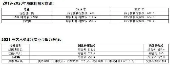(二)湖北美術學院2021年普通本科招生錄取控制分數線(湖北)如下: