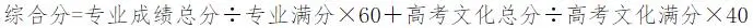 綜合分=專業總分÷專業滿分×60+高考文化總分÷高考文化滿分×40