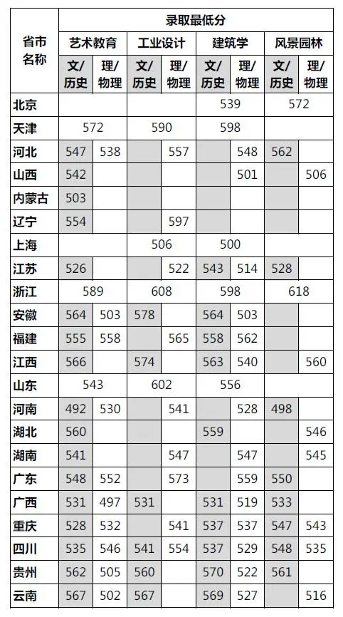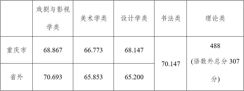 2020年四川美術學院各專業錄取分數線:
