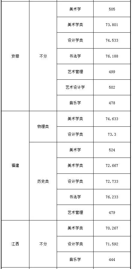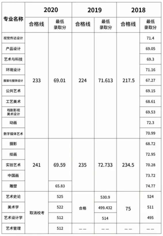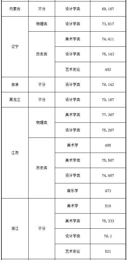 5.藝術(shù)學(xué)理論類(美術(shù)學(xué)、藝術(shù)史論、藝術(shù)設(shè)計(jì)學(xué)、藝術(shù)管理)專業(yè):美術(shù)與設(shè)計(jì)類專業(yè)省統(tǒng)考成績(jī)達(dá)到本科合格線,高考文化課成績(jī)達(dá)到所在省藝術(shù)類本科最低控制線,按文化課成績(jī)從高分到低分排序擇優(yōu)錄取,高考文化課成績(jī)相同按位次排序錄取。要求語(yǔ)文單科成績(jī)不低于90分(按滿分150分計(jì)算,滿分不是150分的折算成150分)。