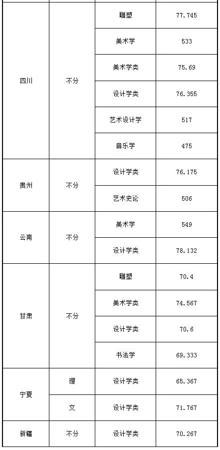 注:1.按遼寧省、河南省、湖南省的錄取規(guī)則,美術(shù)學(xué)類、設(shè)計(jì)學(xué)類、雕塑、書法專業(yè)的綜合分計(jì)算方法為:綜合分=文化總分×0.067+省統(tǒng)考總分×0.167。