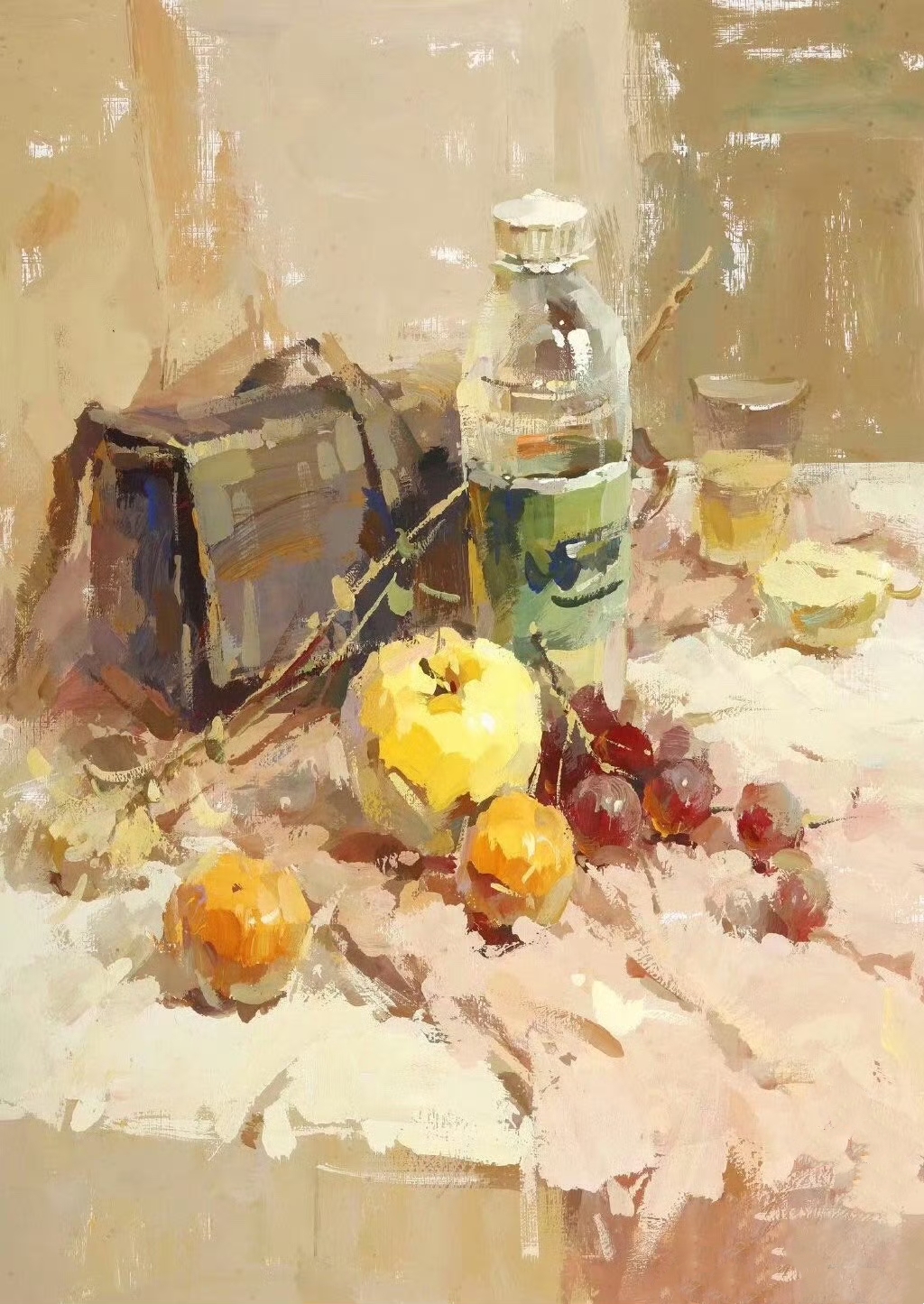 3.布紋和水果和瓶子形成三種層次,拉開(kāi)每個(gè)物體的空間,色調(diào)高級(jí)畫(huà)面響亮。