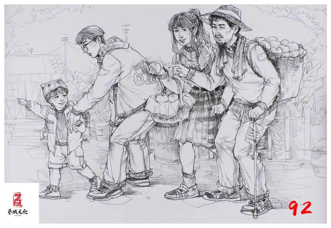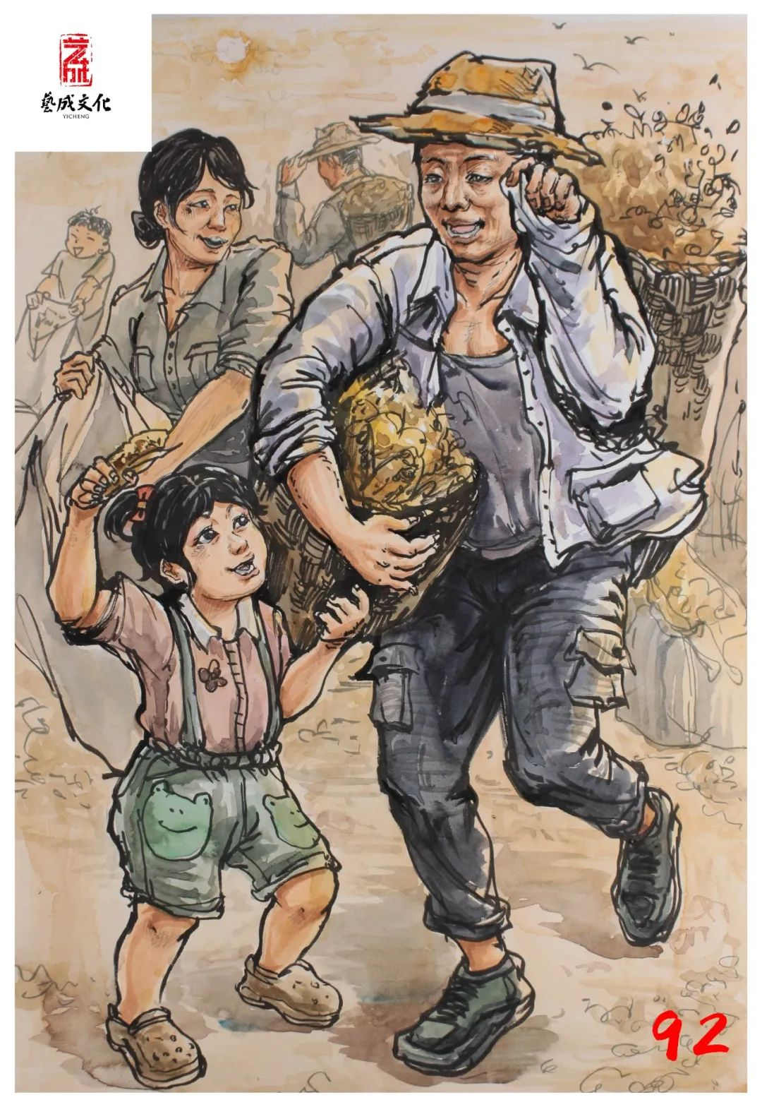 解析:試題要求你創造豐收場景,測試素材中人物的動態比例略有夸張。表現手法與我們的對比草圖略有不同。參考內容較少。主要目標是考驗考生的敏感度和生活記憶能力,人物注重動態比例特征,大量的默寫元素也幫助考生發揮自己的感受和想象力,創作出更好的作品!